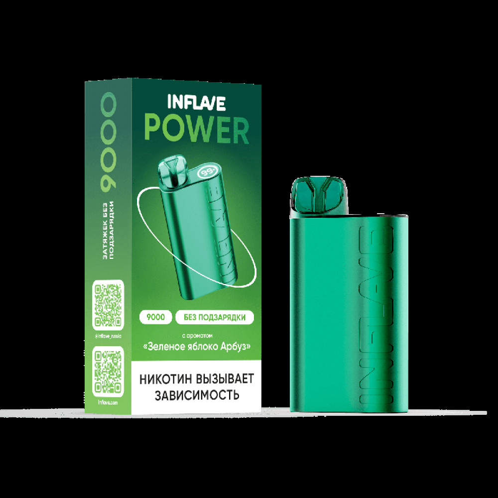 Электронная сигарета INFLAVE POWER 9000 затяжек Зеленое Яблоко Арбуз - купить в Заволжье